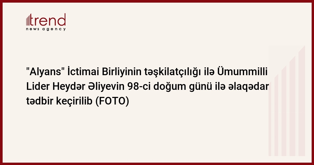 “Alyans” Azərbaycan Xüsusi Xidmət Orqanları Veteranlarının İctimai Birliyinin təşkilatçılığı ilə Dövlət Təhlükəsizlik Xidmətinin (DTX) Mədəniyyət Mərkəzində Ümummilli Lider Heydər Əliyevin 98-ci doğum günü ilə əlaqədar tədbir keçirilib.