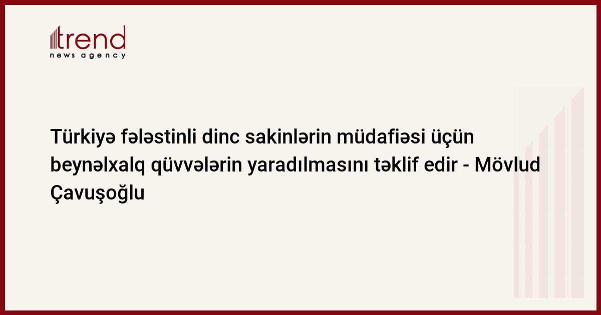 Türkiyə Fələstində dinc sakinlərin müdafiəsnin təmin olunması üçün beynəlxalq qüvvələrin yaradılmasının tərəfdarıdır.