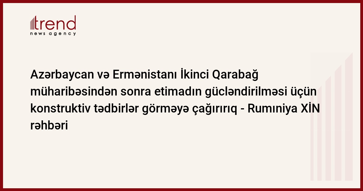 Azərbaycan və Ermənistanı İkinci Qarabağ müharibəsindən sonra etimadın gücləndirilməsi üçün konstruktiv tədbirlər görməyə çağırırıq.