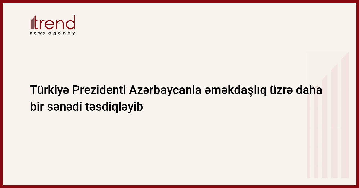 Türkiyə Prezidenti Rəcəb Tayyib Ərdoğan “Azərbaycan Respublikası Hökuməti İlə Türkiyə Respublikası Hökuməti arasında rəqəmsal ticarət sahəsində əməkdaşlıq haqqında” Anlaşma Memorandumunu təsdiq edib.