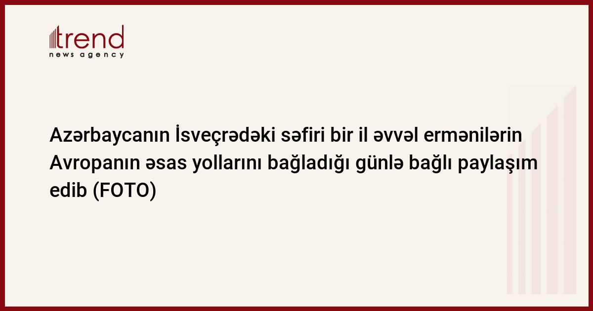 Azərbaycanın İsveçrədəki səfiri Fuad İsgəndərov bir il əvvəl erməni diasporunun baş nazir Nikol Paşinyanın təşviqi ilə Avropadan "Qarabağın müstəqilliyini tanımağı" tələb edərək Avropanın əsas yollarında hərəkəti bağladığı günü xatırladıb.