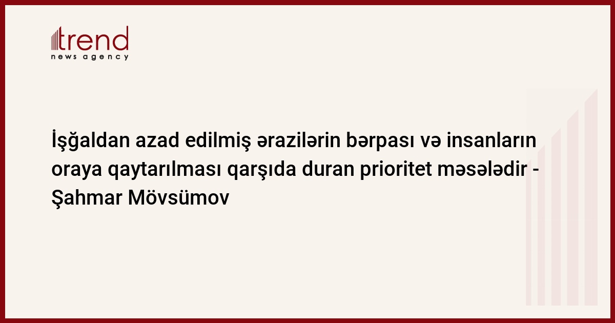 İşğaldan azad edilmiş ərazilərin bərpa edilməsi və insanların oraya qaytarılması Azərbaycanın qarşısında duran prioritet məsələdir.