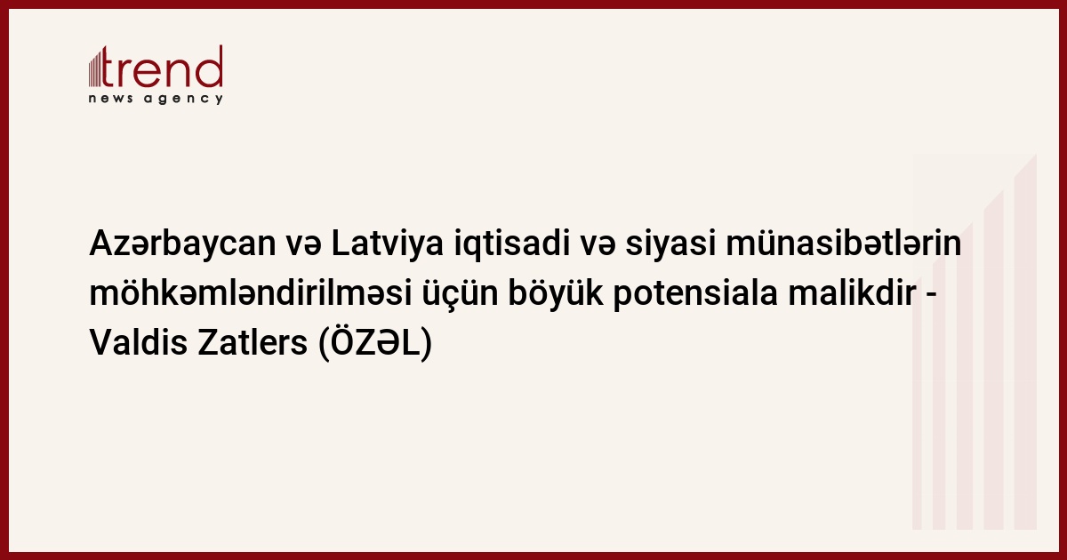 Azərbaycan və Latviya ikitərəfli iqtisadi və siyasi münasibətlərin möhkəmləndirilməsi üçün böyük potensiala malikdir.