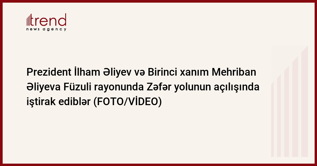 Trend xəbər verir ki, dövlətimizin başçısı və birinci xanım əvvəlcə Füzuli rayonunda Zəfər yolunun açılışında iştirak ediblər.