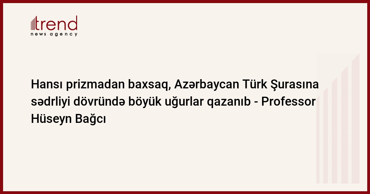 Qarşıdakı dövrdə türk dünyasının siyasi və iqtisadi sahədə çoxşaxəli əməkdaşlıq imkanı qazanacağını, bu birlik platformasının bütün dünya tərəfindən diqqətlə izlənildiyini diqqətə çatdıran professor Hüseyn Bağcı deyib: “Hansı prizmadan baxsaq, Azərbaycan Türk Şurasına sədrliyi dövründə böyük uğurlar qazanıb. Təşkilatın sıraları genişlənib, dünyadakı nüfuzu artıb. Qarşıdakı dövrdə bu dinamikanın yüksəlişi qorunmalıdır”.