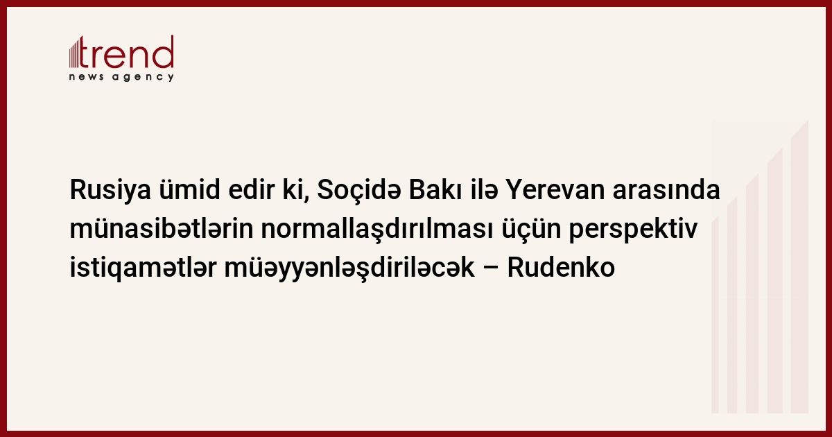 Rusiya tərəfi ümid edir ki, Soçidə Rusiya, Azərbaycan və Ermənistan liderlərinin görüşündə Bakı ilə Yerevan arasında münasibətlərin normallaşdırılması üçün perspektiv istiqamətlər müəyyənləşdiriləcək.