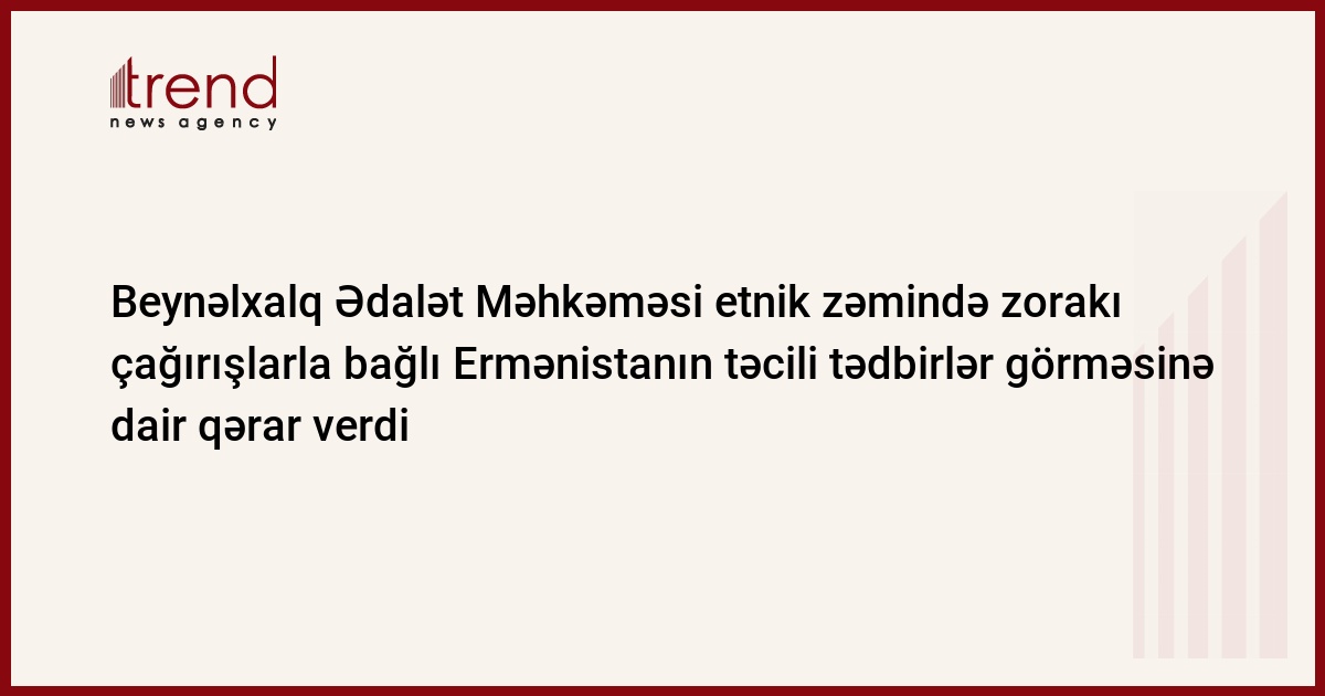 Beynəlxalq Ədalət Məhkəməsi Ermənistanda etnik zəmində zorakı çağırışlarla bağlı qərar verib.