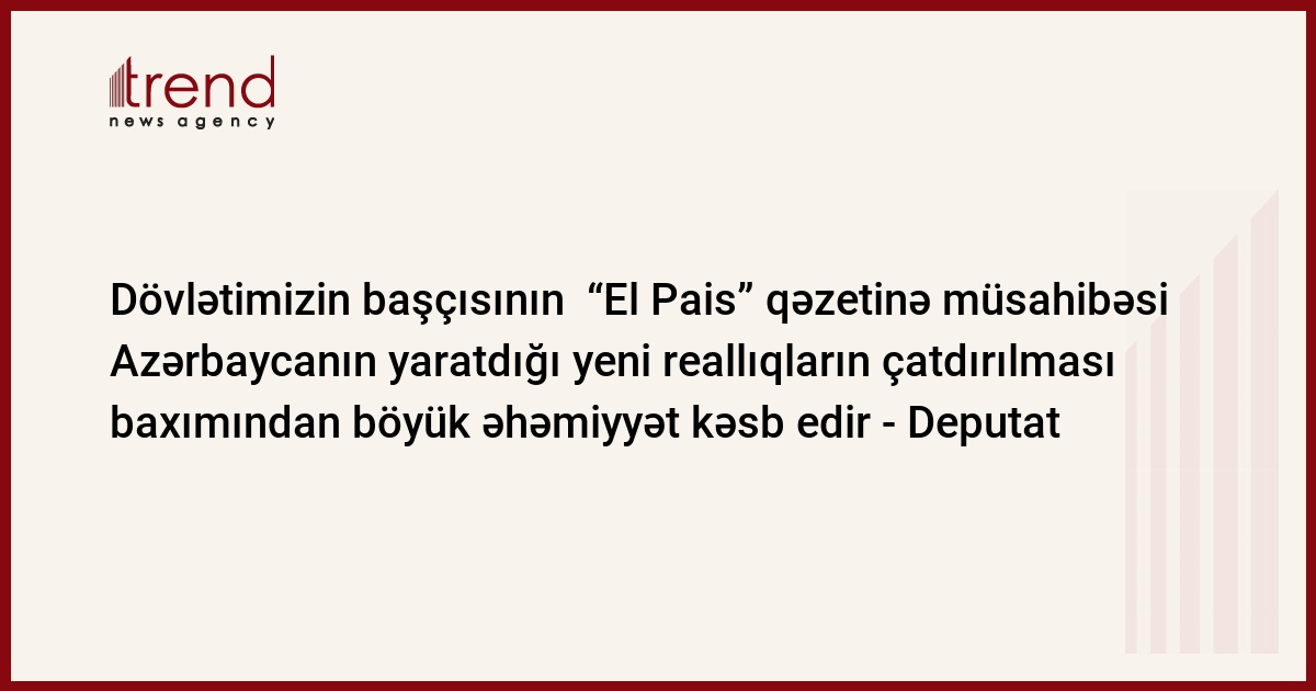 Trend-in məlumatına görə, bunu Millət vəkili Tamam Cəfərova dekabrın 14-də Prezident İlham Əliyevin İspanyanın “El Pais” qəzetinə verdiyi müsahibə ilə bağlı açıqlamasında deyib.