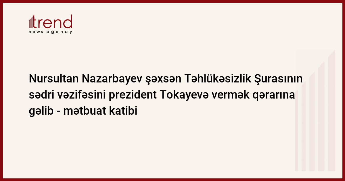 Trend xəbər verir ki, bunu KİV-ə açıqlamasında Qazaxıstanın birinci prezidenti - Yelbası Nursultan Nazarbayevin müşaviri - mətbuat katibi Aydos Ukibay söyləyib.