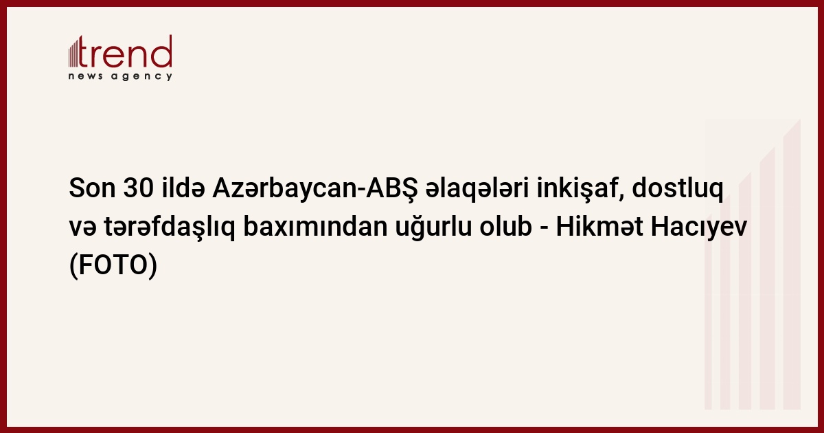Son 30 ildə Azərbaycan-ABŞ əlaqələri inkişaf, dostluq və tərəfdaşlıq baxımından uğurlu olub.