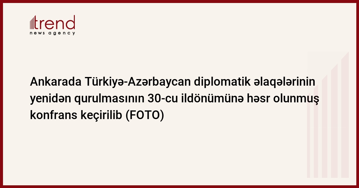 Beynəlxalq Münasibətlərin Təhlili Mərkəzi (BMTM), Türkiyə Xarici İşlər Nazirliyi Strateji Araşdırmalar Mərkəzi (SAM) və Türkiyənin Siyasət, İqtisadiyyat və Toplum Araşdırmaları Vəqfinin (SETA) birgə təşkilatçılığı ilə Ankarada “Türkiyə-Azərbaycan diplomatik əlaqələrinin yenidən qurulmasının 30-cu ildönümü” adlı konfrans keçirilib.