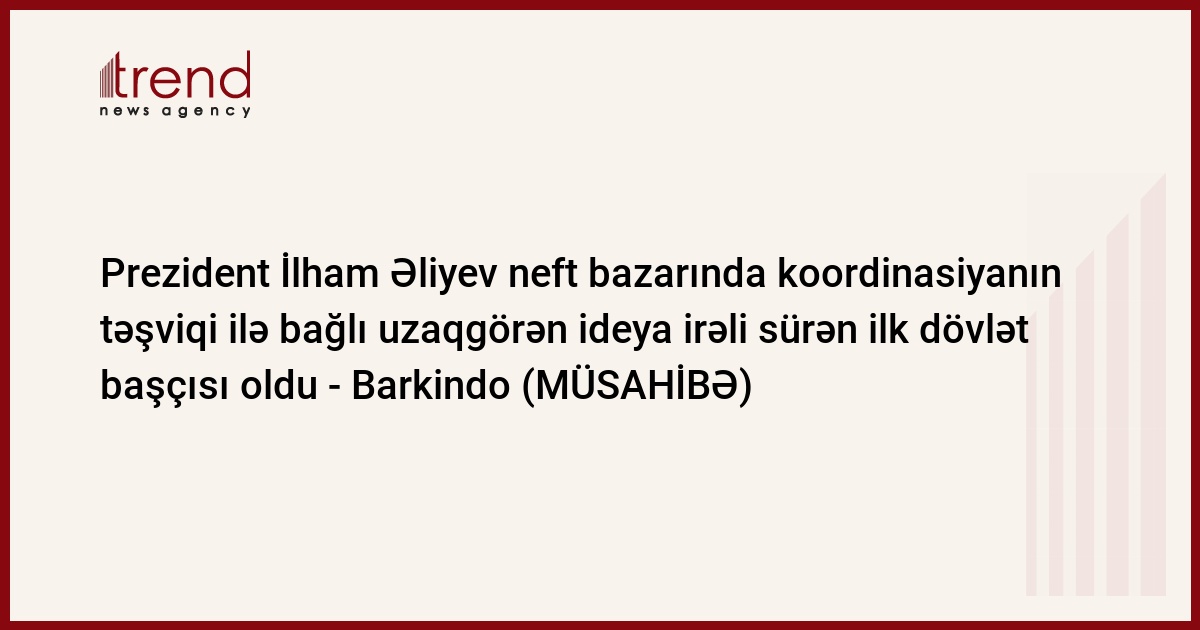 "Əslində, 2016-cı ildə Davosda keçirilən Dünya İqtisadi Forumunda 2014-2016-cı illərdə neft bazarında ciddi tənəzzülün öhdəsindən gəlməyə kömək etmək üçün OPEC və qeyri-OPEC ölkələri arasında neft bazarında koordinasiyanın təşviqi ideyasını birinci olaraq Zati-aliləri Prezident İlham Əliyev irəli sürüb. O, belə yenilikçi və uzaqgörən təklifi irəli sürən ilk dövlət başçısı olub. Prezident İlham Əliyev bir addım öndə idi, və neft istehsal edən 24 ölkə, o cümlədən Azərbaycan 2016-cı il dekabrın 10-da Vyanada keçirilən OPEC və kartelə daxil olmayan ölkələrinin nazirlərinin birinci görüşündə dünya neft bazarının sabitləşməsini könüllü hasilat tənzimlənməsi hesabına sürətləndirmək üçün birgə səylər barədə razılığa gələndə onun müdrik fikrini reallığa çevirdik", - deyə M.Barkində bildirib.