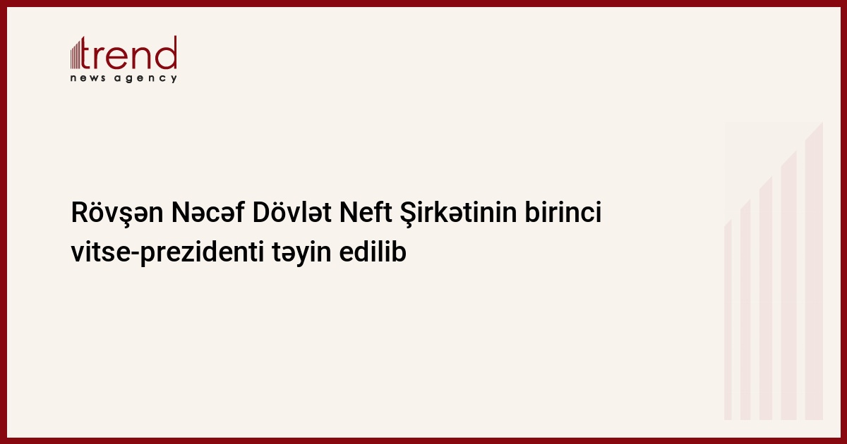 Trend xəbər verir ki, sərəncamla Rövşən Çingiz oğlu Nəcəf Azərbaycan Respublikası Dövlət Neft Şirkətinin birinci vitse-prezidenti təyin edilib.