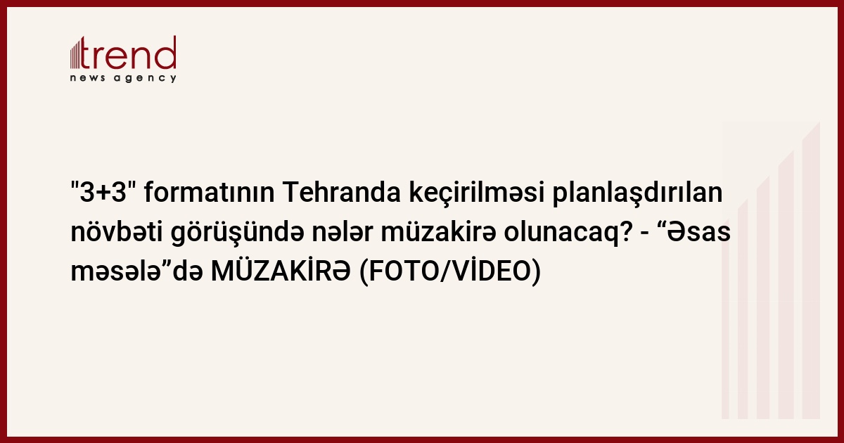 Trend-in məlumatına görə Elnar Məmmədlinin təqdimatında AzTV-nin "Əsas məsələ" verilişində "Regional əməkdaşlıq, "3+3" formatının Tehranda keçirilməsi planlaşdırılan növbəti görüşündə nələr müzakirə olunacaq?" mövzusunda aparılan müzakirələr zamanı bu barədə ətraflı danışılıb. Verilişin qonaqları Milli Məclisin deputatları Sevil Mikayılova, Mahir Abbaszadə və siyasi şərhçi Xəyal Bəşirov mövzu ətrafında müzakirə aparıblar.
