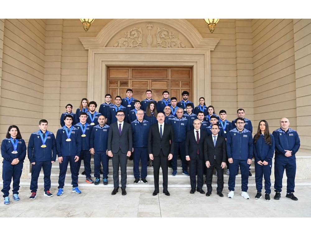 Güləş Azərbaycanda idmanın bütün növləri arasında xüsusi yerə malikdir. Güləş bizim milli idman növümüzdür. Bütün dövrlərdə güclü güləşçilərimiz olubdur, həm sovet dövründə və xüsusilə müstəqillik dövründə. Bizim güləşçilərimiz Azərbaycanı müxtəlif yarışlarda ləyaqətlə təmsil ediblər. Bizim bir çox Olimpiya, dünya, Avropa çempionlarımız var. Əlbəttə, güləşin ənənələri Azərbaycanda kifayət qədər güclüdür və şadam ki, indi gənc nəsil bu ənənələri davam etdirir. Əminəm ki, bu yaxınlarda medallar qazanmış idmançılar arasında gələcəyin Avropa, dünya və Olimpiya çempionları olacaqlar. Nəsildən-nəslə keçən bu təcrübə, bilik, səriştə əminəm ki, Azərbaycanı bundan sonra da dünya miqyasında aparıcı güləş ölkələrindən birinə çevirəcəkdir. Hər halda Avropada gənclər arasında biz birinciyik və mənə verilən məlumata görə, çempionatda 34 ölkə iştirak edirdi. Bunu nəzərə alaraq, bir daha qeyd etmək istəyirəm ki, bu, doğrudan da böyük nailiyyətdir. Əlbəttə, bütün bu amilləri nəzərə alaraq, bu gün mən sizi dəvət etmişəm ki, şəxsən özüm sizi təbrik edim və ümidvar olduğumu bildirim ki, gələcəkdə də siz eyni əzmkarlıqla ölkəmizi ləyaqətlə təmsil edəcəksiniz.