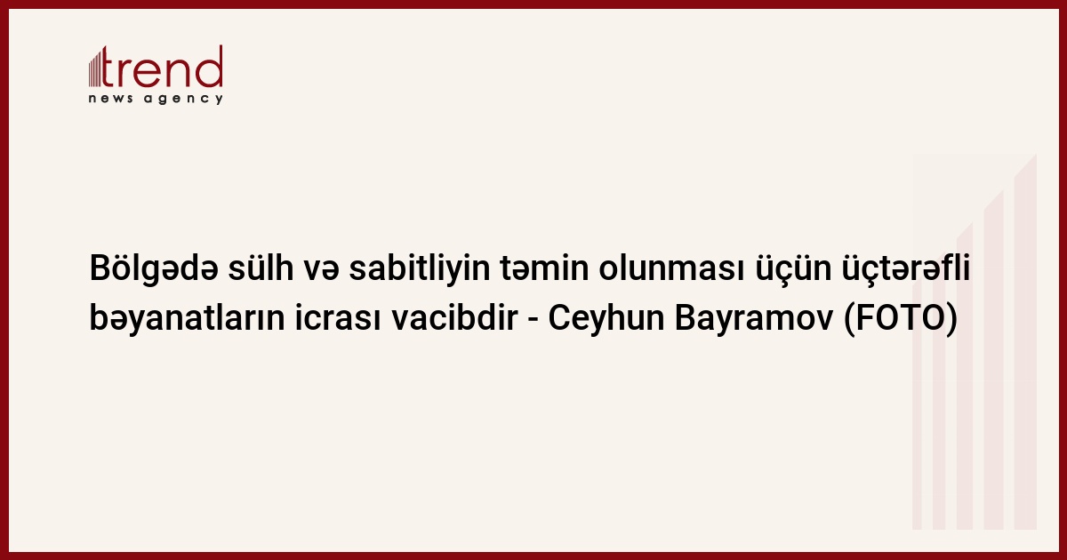 Nazir Ceyhun Bayramov 44 günlük Vətən müharibəsi və üçtərəfli bəyanatların imzalanmasından sonra bölgədə yaranmış yeni reallıqlar, davamlı sülhə nail olunmasına dair imkanlar və Ermənistan-Azərbaycan münasibətlərinin normallaşması ilə bağlı Azərbaycanın mövqeyi barədə qarşı tərəfə ətraflı məlumat verib. Bölgədə sülh və sabitliyin təmin olunması üçün ilk növbədə imzalanmış üçtərəfli bəyanatların tam icra olunmasının vacibliyi vurğulanıb.