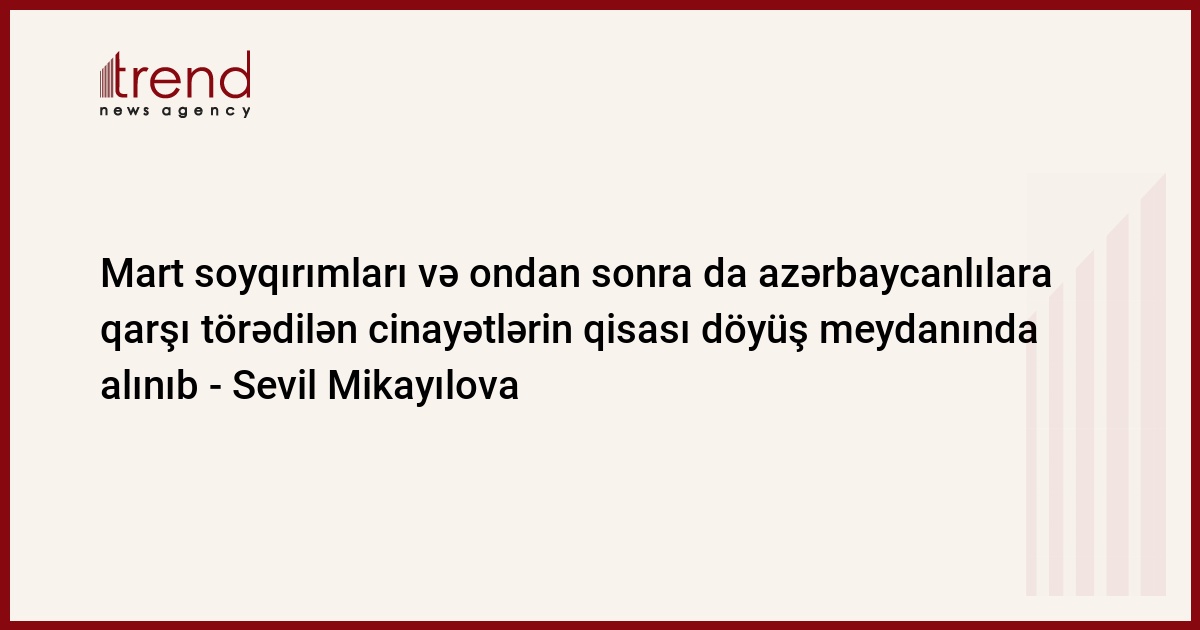 "Ulu öndər Heydər Əliyevin tarixi Fərmanından ötən illər ərzində aparılmış araşdırmalar sayəsində bir çox yeni faktlar və sənədlər toplanıb, Quba şəhərində kütləvi məzarlıq aşkarlanıb. Üzə çıxmış tarixi faktlar 1918-ci ilin mart-aprel aylarında və sonrakı dövrlərdə erməni millətçilərinin həyata keçirdikləri qanlı aksiyaların coğrafiyasının daha geniş və faciə qurbanlarının sayının qat-qat çox olduğunu sübuta yetirir. Prezident İlham Əliyevin 2018-ci il yanvarın 28-də imzaladığı Sərəncama əsasən, 1918-ci il azərbaycanlıların soyqırımının 100 illiyi təkcə Azərbaycanda deyil, dünyanın bir çox guşələrində yaşayan həmvətənlərimiz, diaspor təşkilatları, xaricdəki səfirliklərimiz tərəfindən geniş qeyd olunub. Erməni-bolşevik silahlı dəstələrinin 102 il əvvəl azərbaycanlılara qarşı törətdikləri bəşəri cinayətlər barədə həqiqətlərin dünya ictimaiyyətinə daha dolğun çatdırılması məqsədilə KİV-lərdə məqalələr dərc edilir, çünki geniş ictimaiyyətin əsl həqiqətləri bilməsi bu cür erməni cinayətlərinin təkrarlanmaması üçün çox vacibdir. ", - deyə S.Mikayılova əlavə edib.