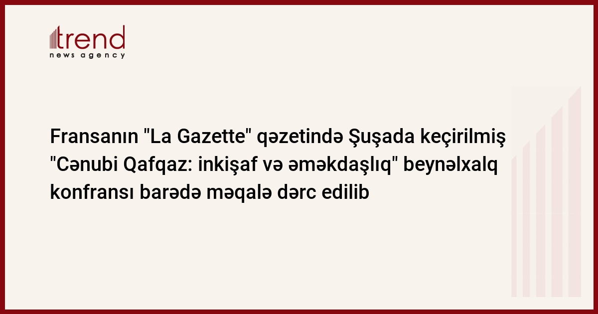 Fransanın Lagazetteaz.fr onlayn qəzeti aprelin 28-də Şuşada keçirilmiş "Cənubi Qafqaz: inkişaf və əməkdaşlıq" beynəlxalq konfransına həsr olunmuş məqalə dərc edib.