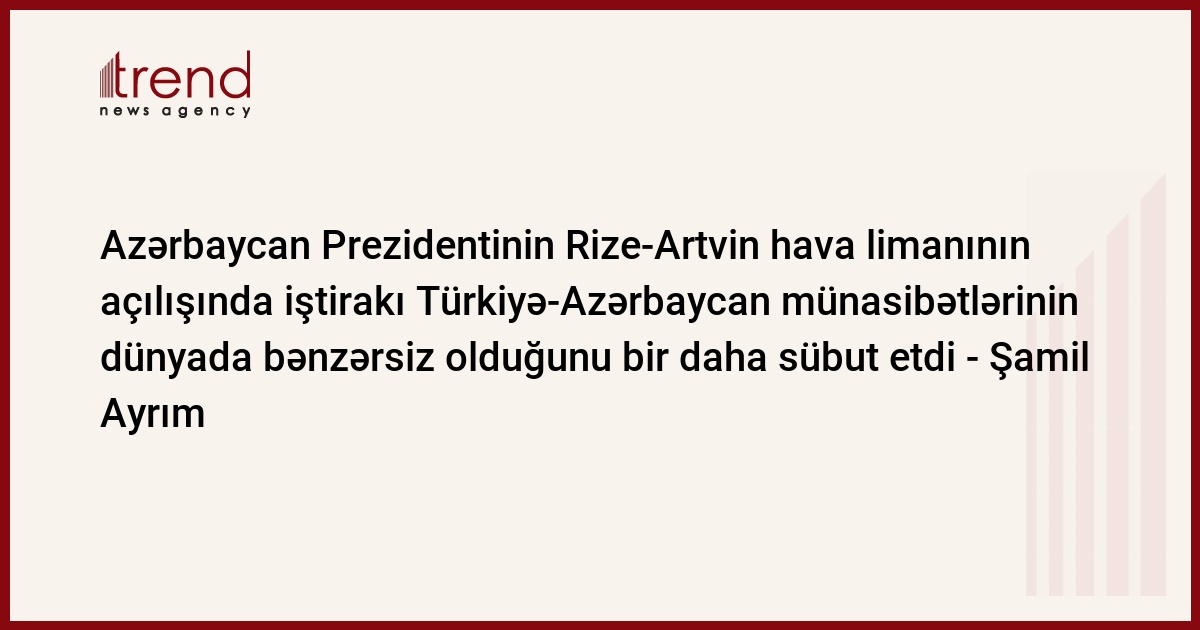 Bu barədə Trend-in suallarını cavablandırarkən Türkiyə Böyük Millət Məclisinin üzvü, Türkiyə-Azərbaycan parlamentlərarası dostluq qrupunun rəhbəri Şamil Ayrım bildirib.