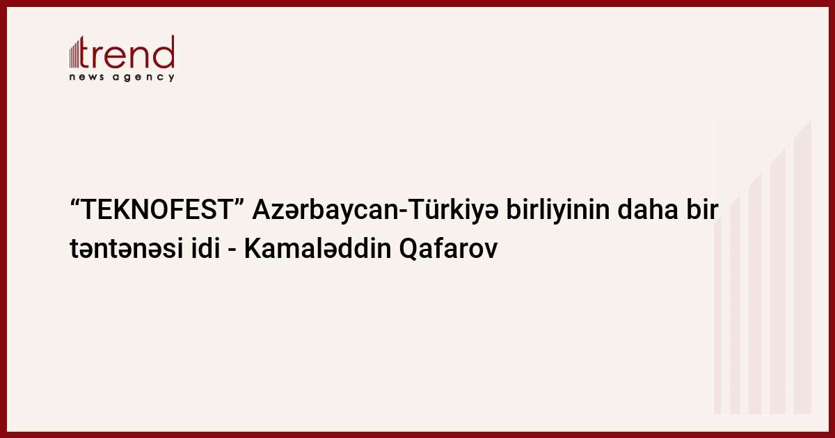“İki dost və qardaş ölkə, strateji müttəfiqlər olan Azərbaycan və Türkiyə öz birliklərinin sarsılmazlığını növbəti dəfə bütün dünyaya nümayiş etdirdilər. Mayın 26-29-da Bakıda ilk dəfə keçirilən “TEKNOFEST Azərbaycan” Aerokosmik və Texnologiya Festivalı bu birliyin daha bir bariz təzahürü oldu. Azərbaycan Prezidenti İlham Əliyev və Türkiyə Prezidenti Rəcəb Tayyib Ərdoğanın bu festivalda, həmçinin paytaxtda 7 saylı “ASAN xidmət” mərkəzinin və “Bilim Bakı” mərkəzinin açılışında birgə iştirakı əsl qardaşlıq nümunəsi kimi dünyaya təqdim edildi.” Bu sözləri mətbuata açıqlamasında Milli Məclisin deputatı Kamaləddin Qafarov deyib.