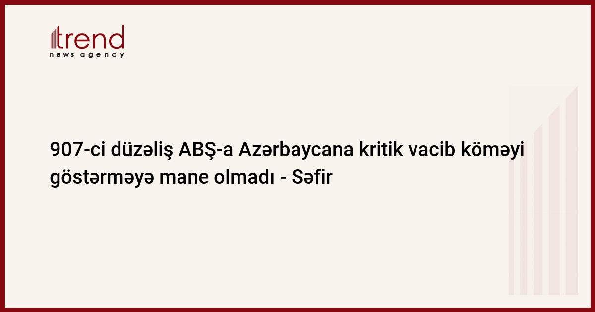 "Azadlığa dəstək aktı"na 907-ci düzəliş hələ də qüvvədədir, amma bu, ABŞ-a təhlükəsizlik sahəsində Azərbaycana kritik vacib köməyi göstərməyə heç bir şəkildə mane olmadı.