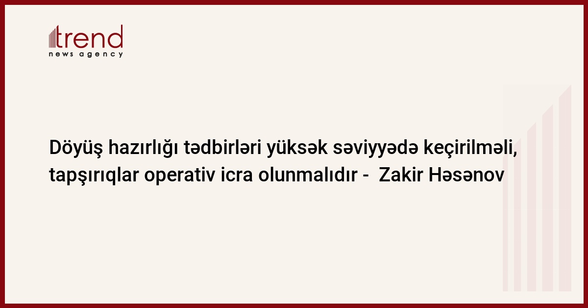 Müdafiə naziri bölmələrin döyüşə hazırolma səviyyəsinin yüksək səviyyədə saxlanılması məqsədilə qoşunların gündəlik xidməti-döyüş fəaliyyətinin, eləcə də keçirilən təlimlərin keyfiyyətinin və hərbi qulluqçuların praktiki vərdişlərinin təkmilləşdirilməsini tapşırıb.
