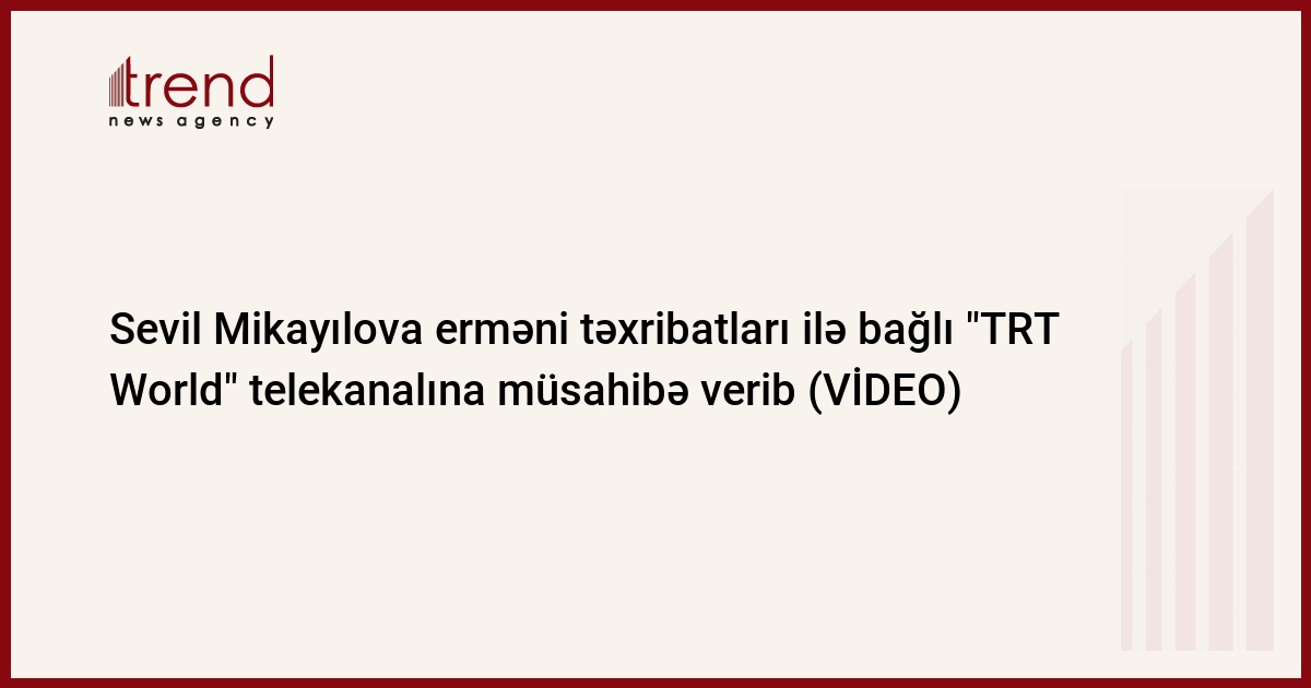 Milli Məclisin deputatı Sevil Mikayılova son günlərdə Ermənistan silahlı qüvvələrinin Azərbaycanla sərhəddə genişmiqyaslı təxribatları ilə bağlı "TRT World" telekanalına müsahibə verib.