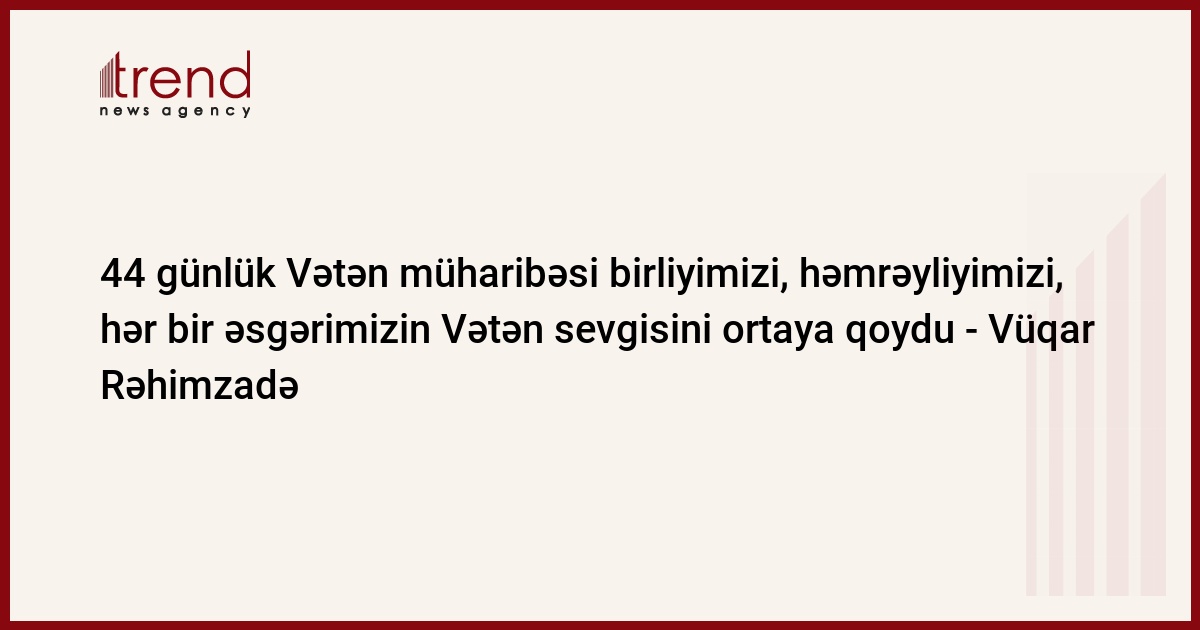 Vüqar Rəhimzadə vurğulayb ki, bugünümüzün Zəfər sevincini yaşayarkən müasir müstəqil Azərbaycan dövlətinin qurucusu, ulu öndər Heydər Əliyevin 2003-cü ildə xalqa müraciətində əksini tapan fikirləri yada salmamaq mümkün deyil: "İnanıram ki, mənim axıra çatdıra bilmədiyim taleyüklü məsələləri, planları, işləri Sizin köməyiniz və dəstəyinizlə İlham Əliyev başa çatdıra biləcək. Mən ona özüm qədər inanıram və gələcəyinə böyük ümidlər bəsləyirəm.” Prezident İlham Əliyevin 19 ilə yaxın Prezidentlik dövrünün 2003-2020-ci illəri torpaqlarımızın işğaldan azad edilməsinə hazırlıq dövrü kimi xarakterizə edilir: “Bu illər ərzində Azərbaycan bütün sahələrdə davamlı uğurlara imza atdı, münaqişənin həlli üçün möhkəm hüquqi baza formalaşdırdı. Məhz ölkəmizin informasiya cəbhəsində üstünlüyü 44 günlük İkinci Qarabağ müharibəsində tarixi Zəfərimizdə öz sözünü dedi. Azərbaycanın Birinci vitse-prezidenti Mehriban xanım Əliyeva Vətən müharibəsinin gedişi dövründə bir daha bu çağırışı etdi ki, biz hamımız erməni yalanını ifşa etmək üçün maksimum səy göstərməyə borclu olan əsgərlərik.