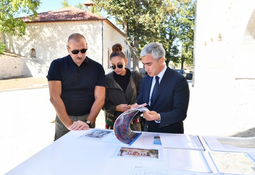 Azərbaycan Respublikasının Prezidenti İlham Əliyev və birinci xanım Mehriban Əliyeva Şuşada Mehmandarovların malikanə kompleksində aparılan bərpa işlərinin gedişi ilə tanış olublar.