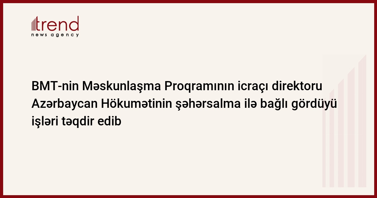Trend xəbər verir ki, bu fikirləri BMT-nin Yaşayış Məskənləri Proqramı (UN-HABITAT) və Dövlət Şəhərsalma və Arxitektura Komitəsinin birgə əməkdaşlığı, ADA Universitetinin təşkilati dəstəyi ilə Ağdamda keçirilən Azərbaycan Milli Şəhərsalma Forumunda çıxışı zamanı BMT-nin Məskunlaşma Proqramının icraçı direktoru xanım Maimuna Mohd Şərif söyləyib.