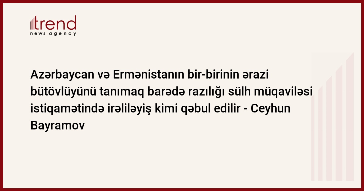 Azərbaycan və Ermənistanın bir-birinin ərazi bütövlüyünü tanımaq barədə razılığı sülh müqaviləsi istiqamətində irəliləyiş kimi qəbul edilir.