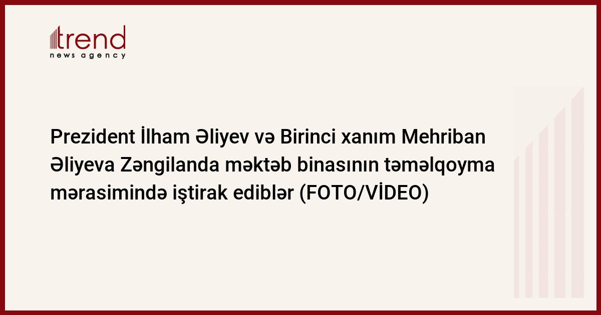 Azərbaycan Respublikasının Prezidenti İlham Əliyev və Birinci xanım Mehriban Əliyeva oktyabrın 19-da Zəngilan şəhərində məktəb binasının təməlqoyma mərasimində iştirak ediblər.