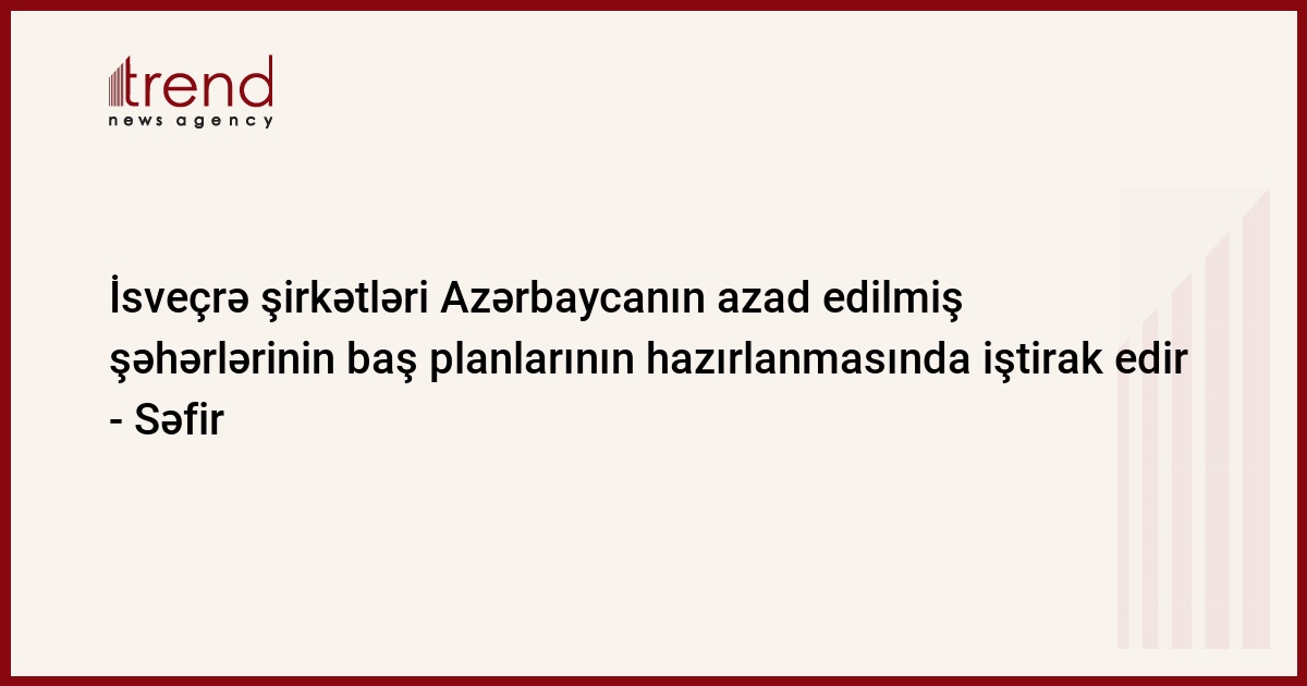 İsveçrə şirkətləri erməni işğalı dövründə dağıdılmış Azərbaycan şəhərlərinin baş planlarının hazırlanmasında iştirak edir.