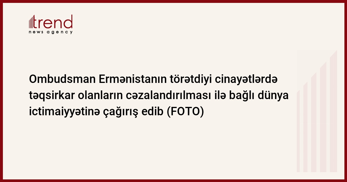 Ombudsman Bərdə rayonunda Ermənistanın ölkəmizə qarşı törətdiyi sülh və insanlıq əleyhinə çoxsaylı cinayətlərin törədilməsində təqsirkar olan şəxslərin ədalət mühakiməsinə cəlb edilərək cəzalandırılması ilə bağlı dünya ictimaiyyətinə çağırış edib.