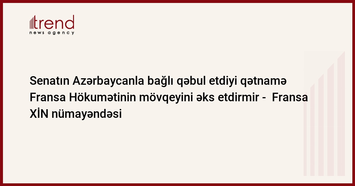 Fransa Senatının Azərbaycanla bağlı qəbul etdiyi qətnamə Fransa Hökumətinin mövqeyini əks etdirmir.