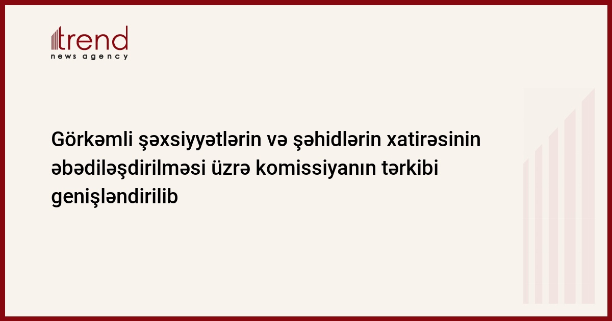 Görkəmli şəxsiyyətlərin, xalq, vətən, dövlət qarşısında xidmətləri olan şəxslərin və şəhidlərin xatirəsinin əbədiləşdirilməsi üzrə Komissiyanın tərkibi genişləndirilib.