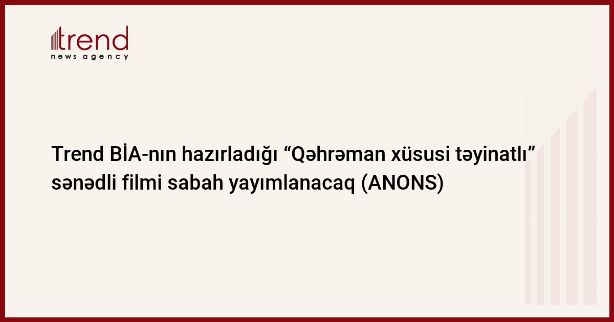 Trend BİA-nın Dövlət Təhlükəsizliyi Xidmətinin dəstəyi ilə hazırladığı “Qəhrəman xüsusi təyinatlı” sənədli filmi dekabrın 19-da Trend.az, day.az və milli.az saytlarında, saat 16:15-də isə Real TV-də yayımlanacaq.