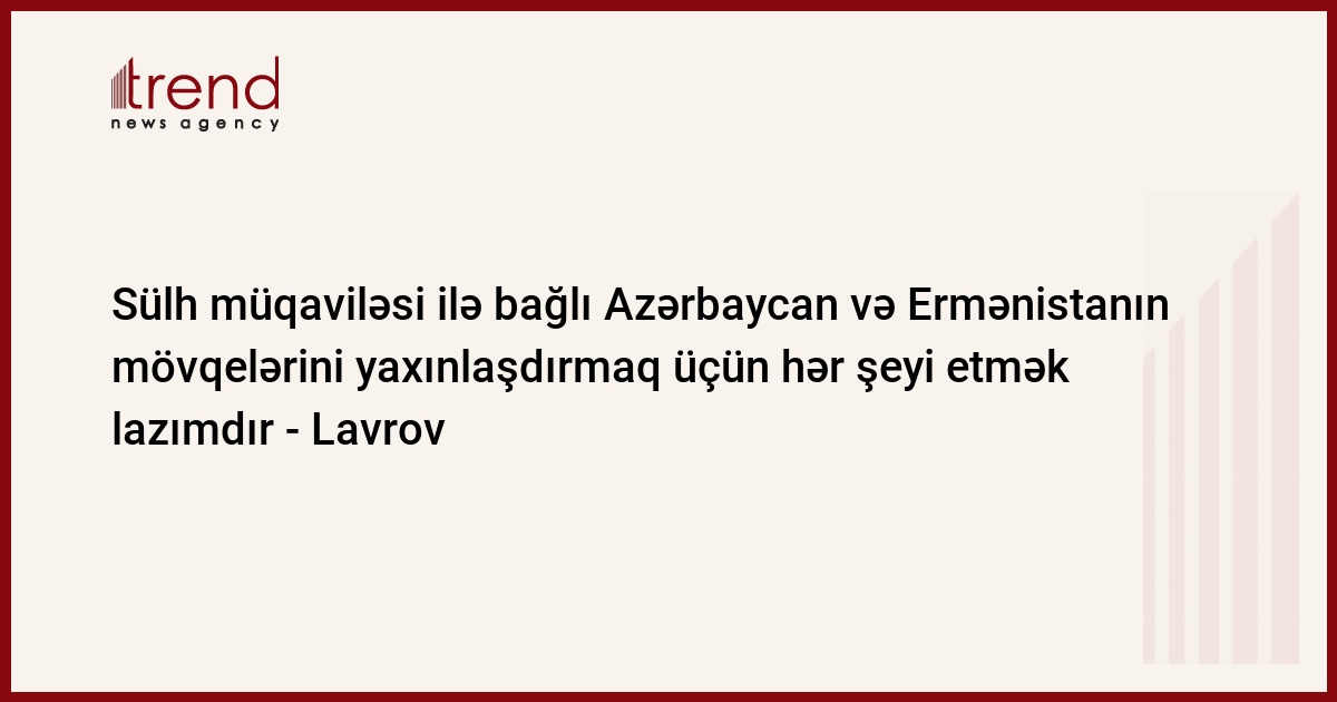 Sülh müqaviləsi ilə bağlı Azərbaycan və Ermənistanın mövqelərini yaxınlaşdırmaq üçün hər şeyi etmək lazımdır.