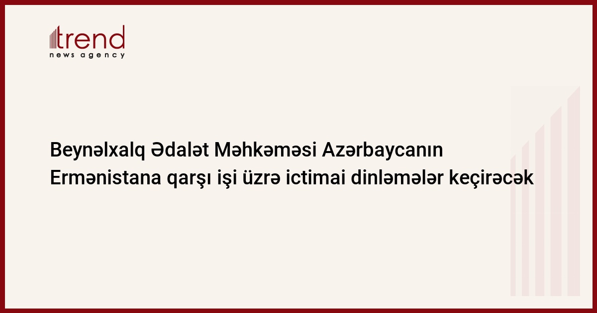 Beynəlxalq Ədalət Məhkəməsində “İrqi ayrı-seçkiliyin bütün formalarının ləğvi haqqında” beynəlxalq konvensiya çərçivəsində Azərbaycanın Ermənistana qarşı işi üzrə açıq dinləmələr keçiriləcək.