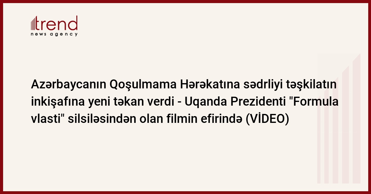 Trend xəbər verir ki, bunu Uqanda prezidenti Yoveri Kaquta Museveni "TASS"ın baş direktorunun birinci müavini Mixail Qusmanın "Formula vlasti" layihəsi çərçivəsində növbəti filmi zamanı deyib.