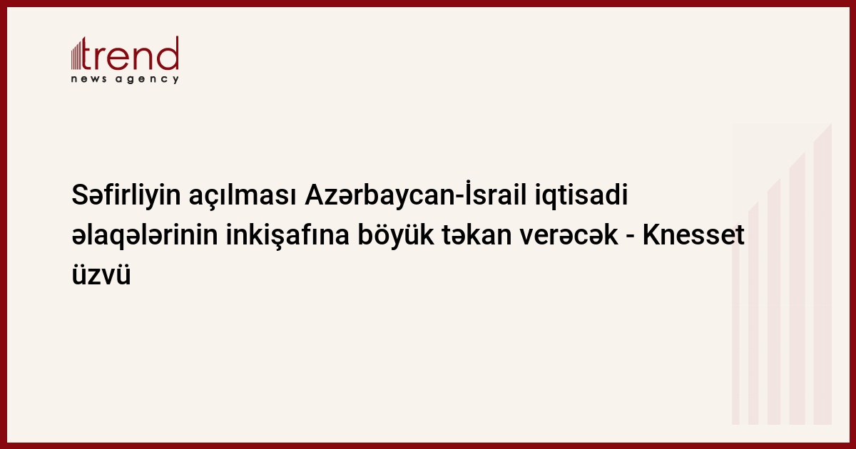 İsraildə Azərbaycan səfirliyinin açılması iki ölkə arasında iqtisadi əlaqələrin inkişafına böyük təkan verəcək.