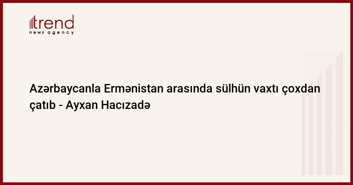 "Azərbaycanla Ermənistan arasında ərazi bütövlüyü və suverenliyə əsaslanan sülhün vaxtı çoxdan çatıb".
