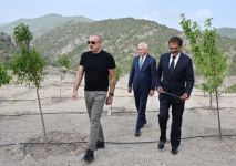 Prezident İlham Əliyev yolüstü balıq istehsalı müəssisəsinə də baxdı.