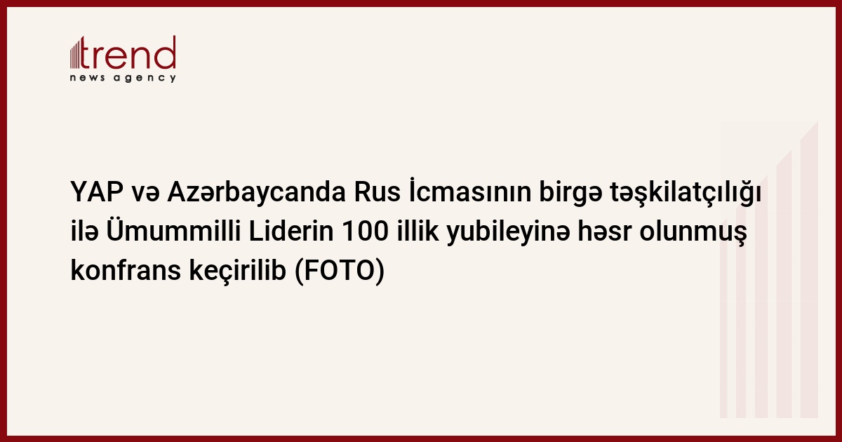 İyunun 3-də Yeni Azərbaycan Partiyası (YAP) və Azərbaycanda Rus İcmasının birgə təşkilatçılığı ilə Ümummilli Lider Heydər Əliyevin 100 illik yubileyinə həsr olunmuş “Heydər Əliyev: multikulturalizm və tolerantlıq Azərbaycan cəmiyyətinin inkişaf konsepsiyası kimi” mövzusunda konfrans keçirilib.