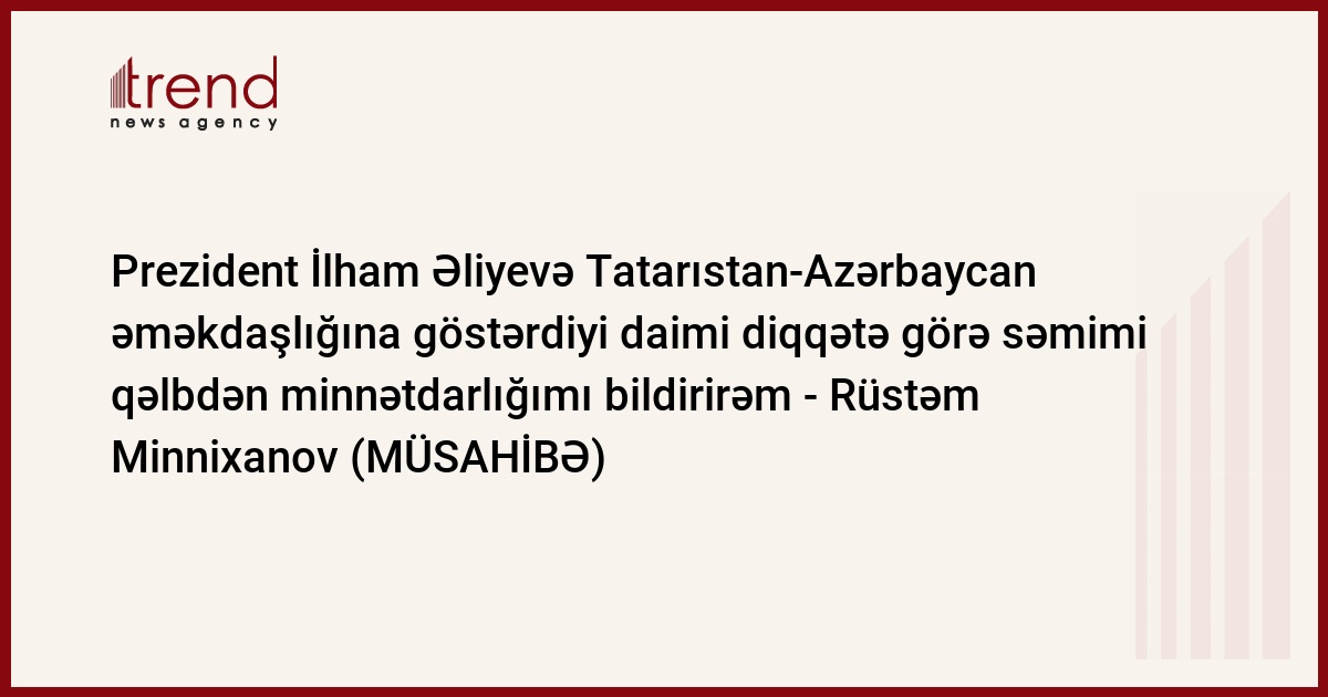 Bu barədə Trend-ə özəl müsahibəsində Rusiya Federasiyasının Tatarıstan Respublikasının Rəisi Rüstəm Minnixanov deyib.