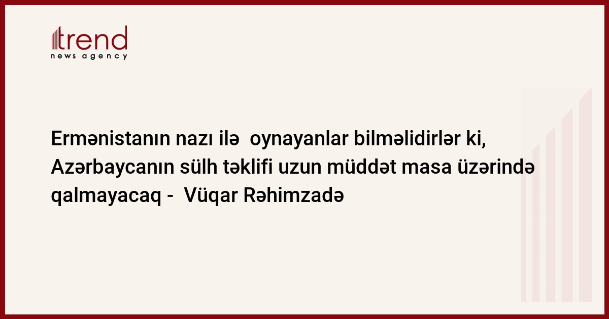"İşğalçı dövlət son addımları ilə açıq-aşkar sülh müqaviləsinin imzalanması prosesinin uzanmasında maraqlı olduğunu bir daha təsdiqləyir. Artıq beynəlxalq təşkilatların, aparıcı dövlətlərin Ermənistana ciddi şəkildə "dur!" deməsi vaxtıdır. Ermənistanın nazı ilə oynayanlar bilməlidirlər ki, Azərbaycanın sülh təklifi uzun müddət masa üzərində qalmayacaq".