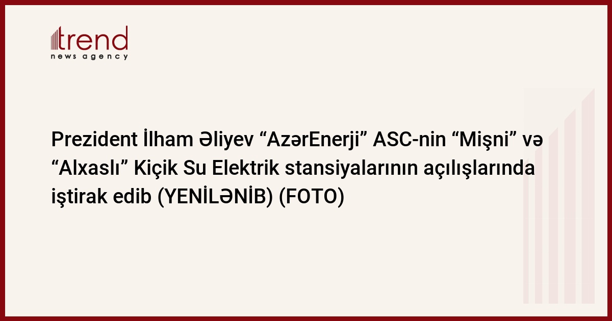 Trend xəbər verir ki, dövlətimizin başçısı Laçın rayonunda “AzərEnerji” Açıq Səhmdar Cəmiyyətinin “Mişni” və “Alxaslı” Kiçik Su Elektrik stansiyalarının açılışında iştirak edib.