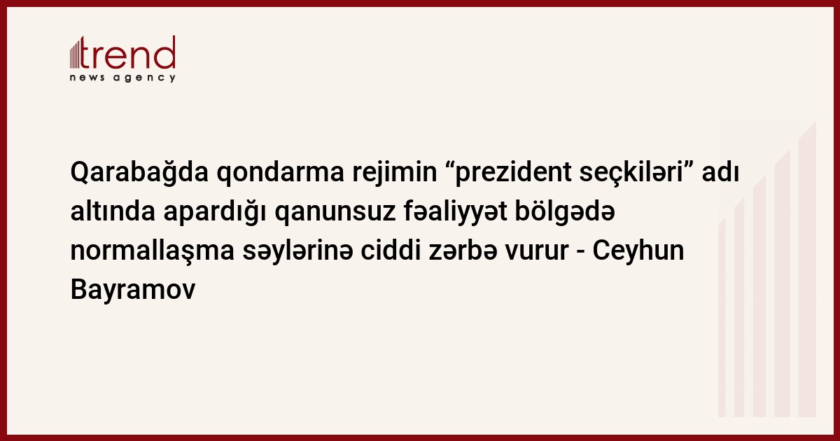 Azərbaycanın Qarabağ bölgəsində qondarma rejimin 9 sentyabr tarixində “prezident seçkiləri” adı altında apardığı qanunsuz fəaliyyət Azərbaycan Respublikasının Konstitusiyası, qanunları və beynəlxalq hüququn norma və prinsiplərinin kobud şəkildə pozuntusudur.