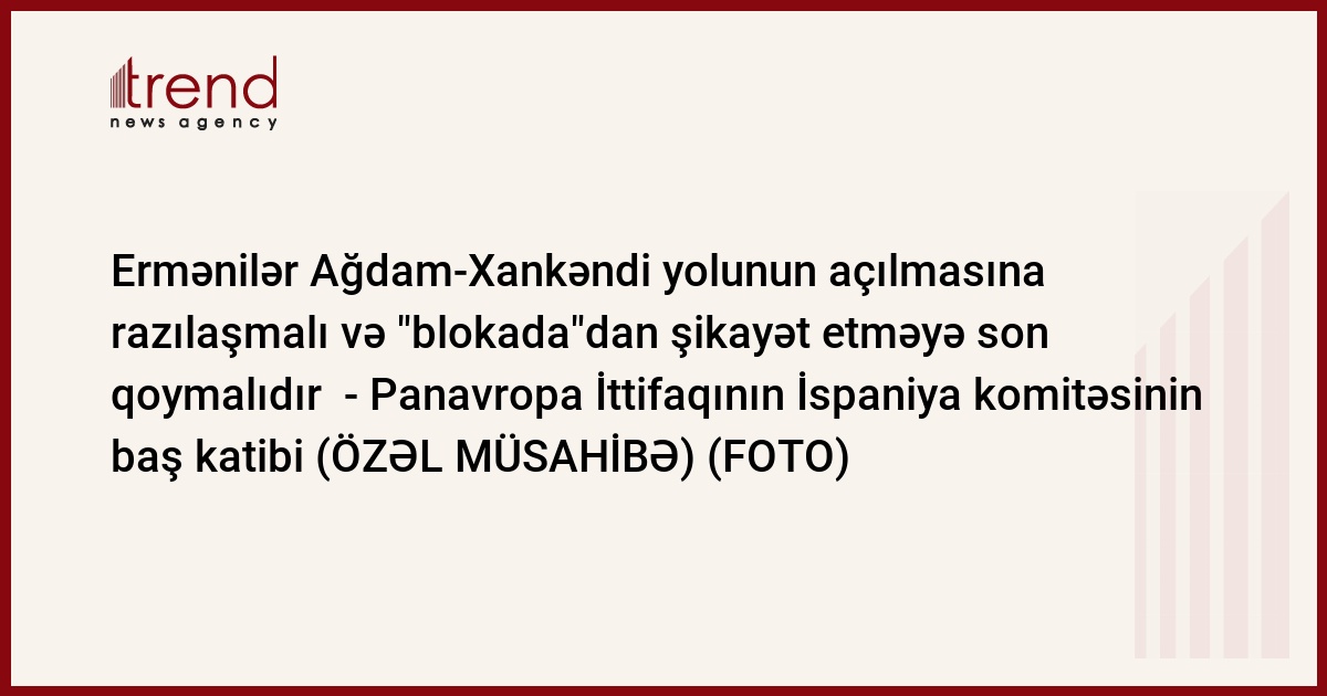 Bu barədə Trend-ə özəl müsahibəsində Panavropa İttifaqının İspaniya komitəsinin baş katibi və Beynəlxalq Panavropa İttifaqı Rəyasət Heyətinin üzvü, Kral Xuan Karlos adına Universitetin hüquq professoru Karlos Uriarte Sançes deyib.