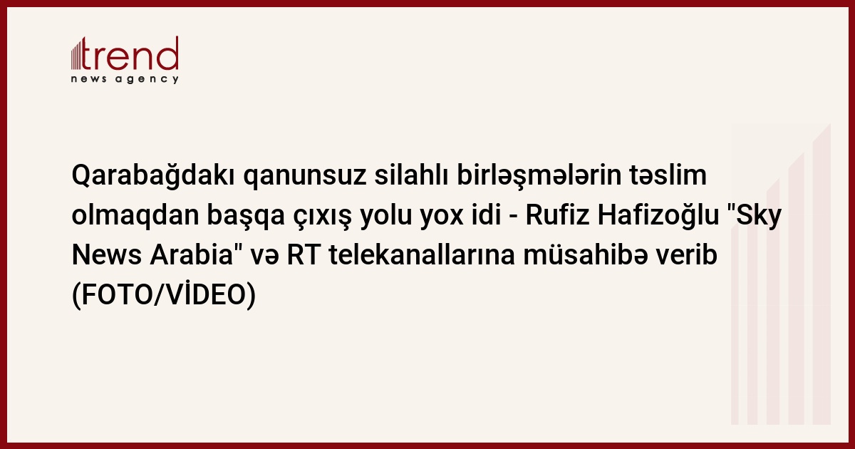 Trend-in məlumatına görə, bunu Trend BİA-nın baş direktorunun müavini Rufiz Hafizoğlu "Sky News Arabia" və Rusiyanın ərəb dilində yayımlanan RT telekanalına müsahibəsi zamanı deyib.